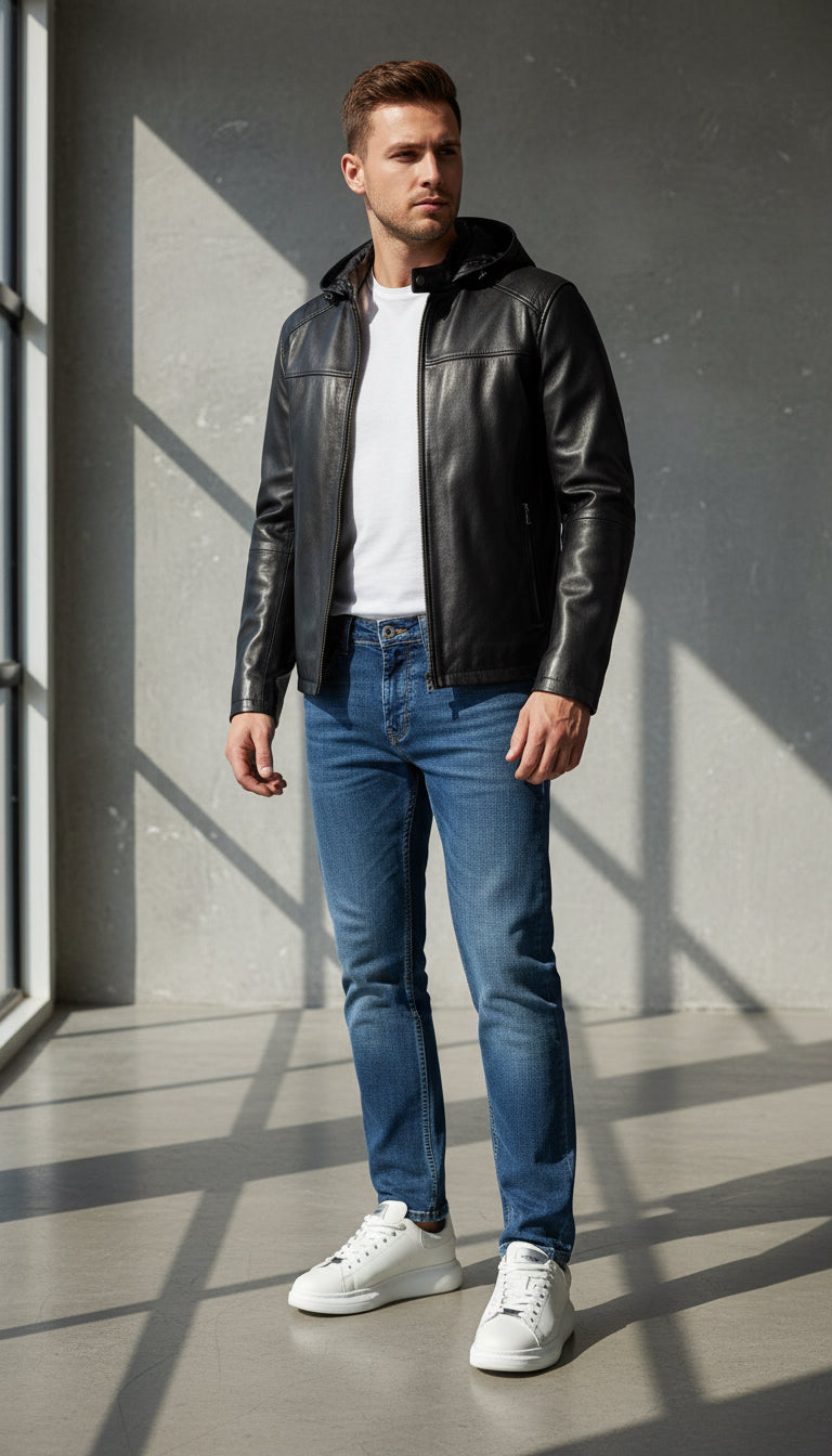 Black Leather Jacket with Detachable Hood & Lining offers unmatched versatility and modern sophistication.