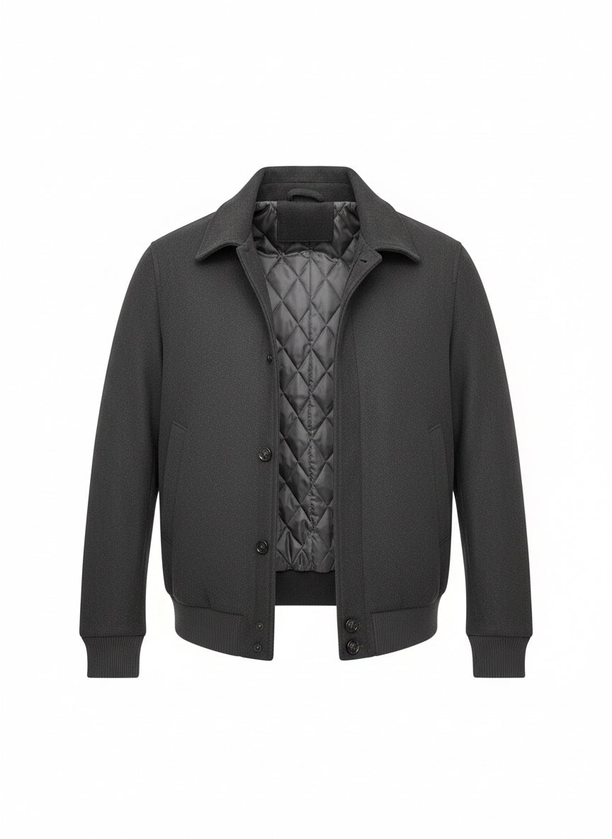 Sleek, structured, and effortlessly versatile, the Black Textured Bomber Jacket is designed for the modern man who values understated sophistication.
