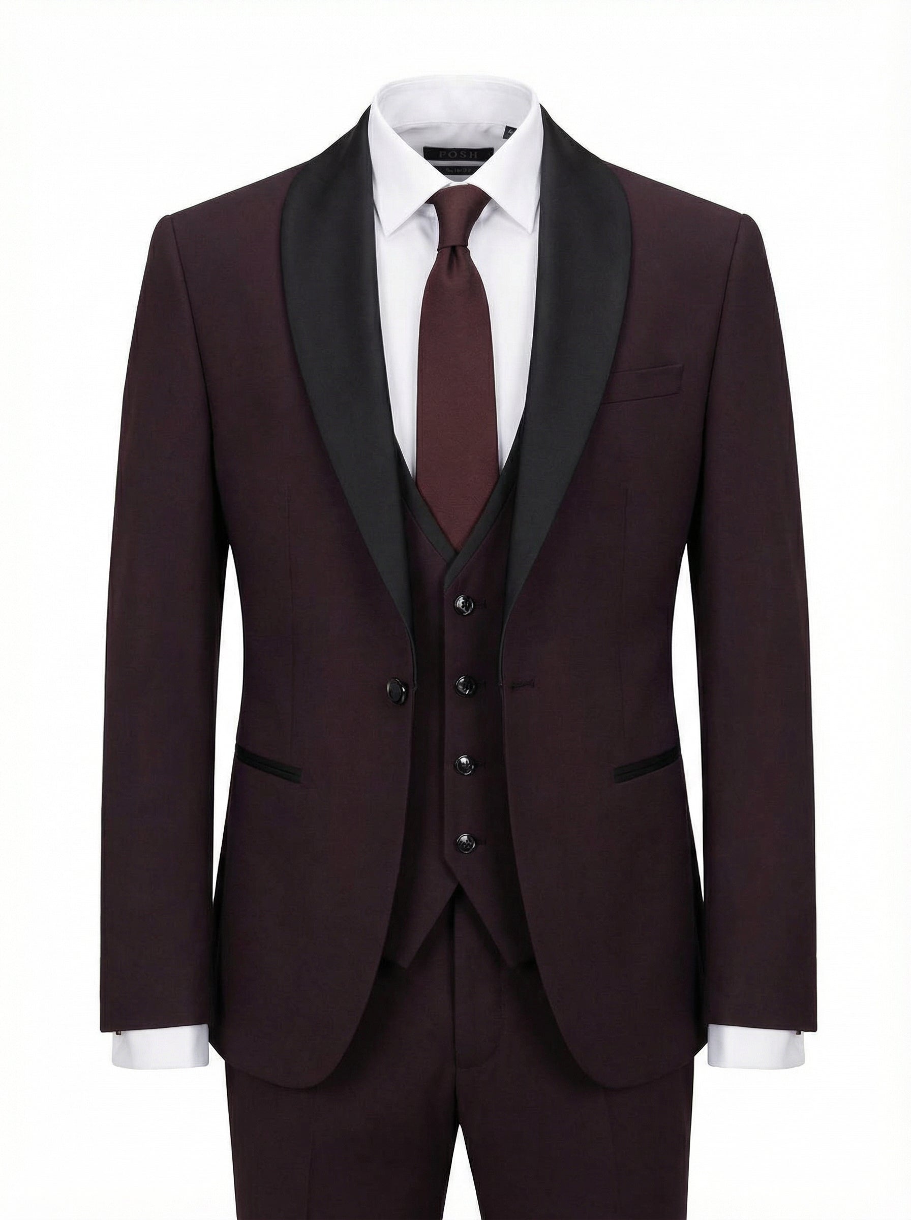 Burgundy Tuxedo – Shawl Lapel, 3-Piece