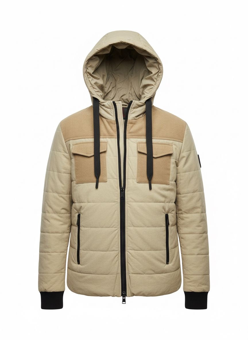 A casual yet elevated winter jacket blending texture, warmth, and urban character. Designed with contrast fabric panels and a modern utilitarian look.